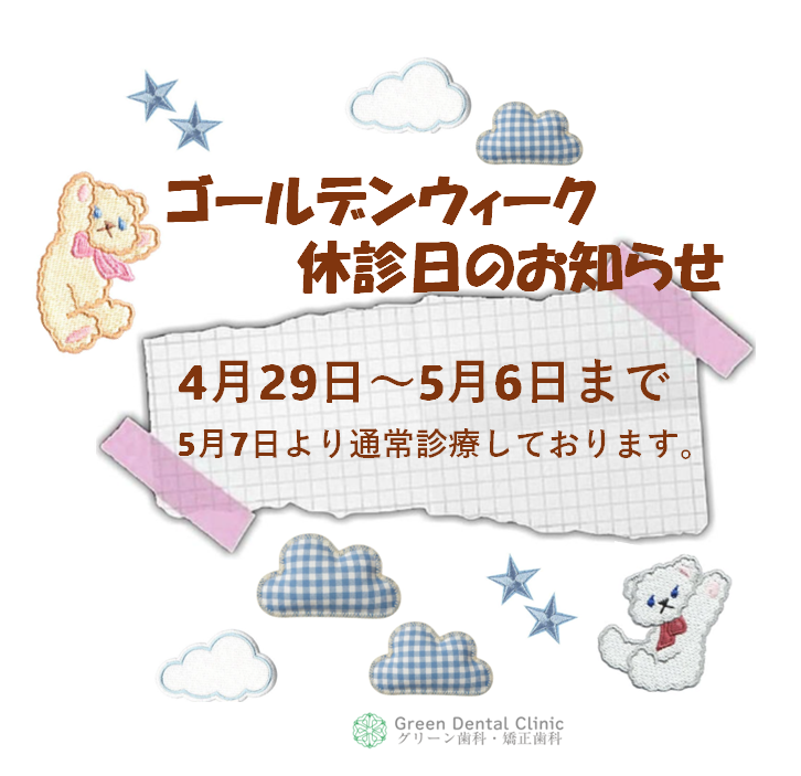 ゴールデンウィーク期間中の休診日のお知らせです。